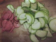 清洗好的大烟角瓜,接下来就是切片或切块了。如果你喜欢脆脆的口感,可以切成薄片;如果喜欢软糯的口感,那就切成块状。记得切片时,刀要快,这样切出来的瓜片才会更加美观。